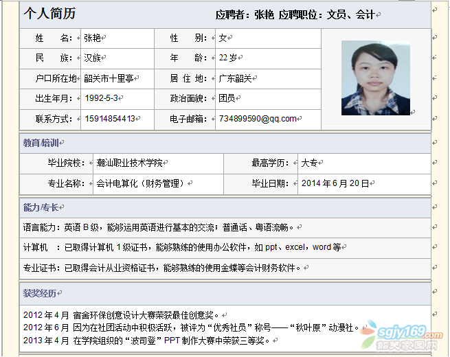 正文摘要:已經(jīng)取得會計從業(yè)資格證書,但是在從事會計工作方面的經(jīng)驗暫無,之前2013年9月-2014年7月在韶關(guān)市同樂網(wǎng)游代練服務(wù)部從事過文員、銷售、客服的工作。我希望能找到符合專業(yè)的工作,希望能有培訓(xùn)的機會。希望工作有國 ... |